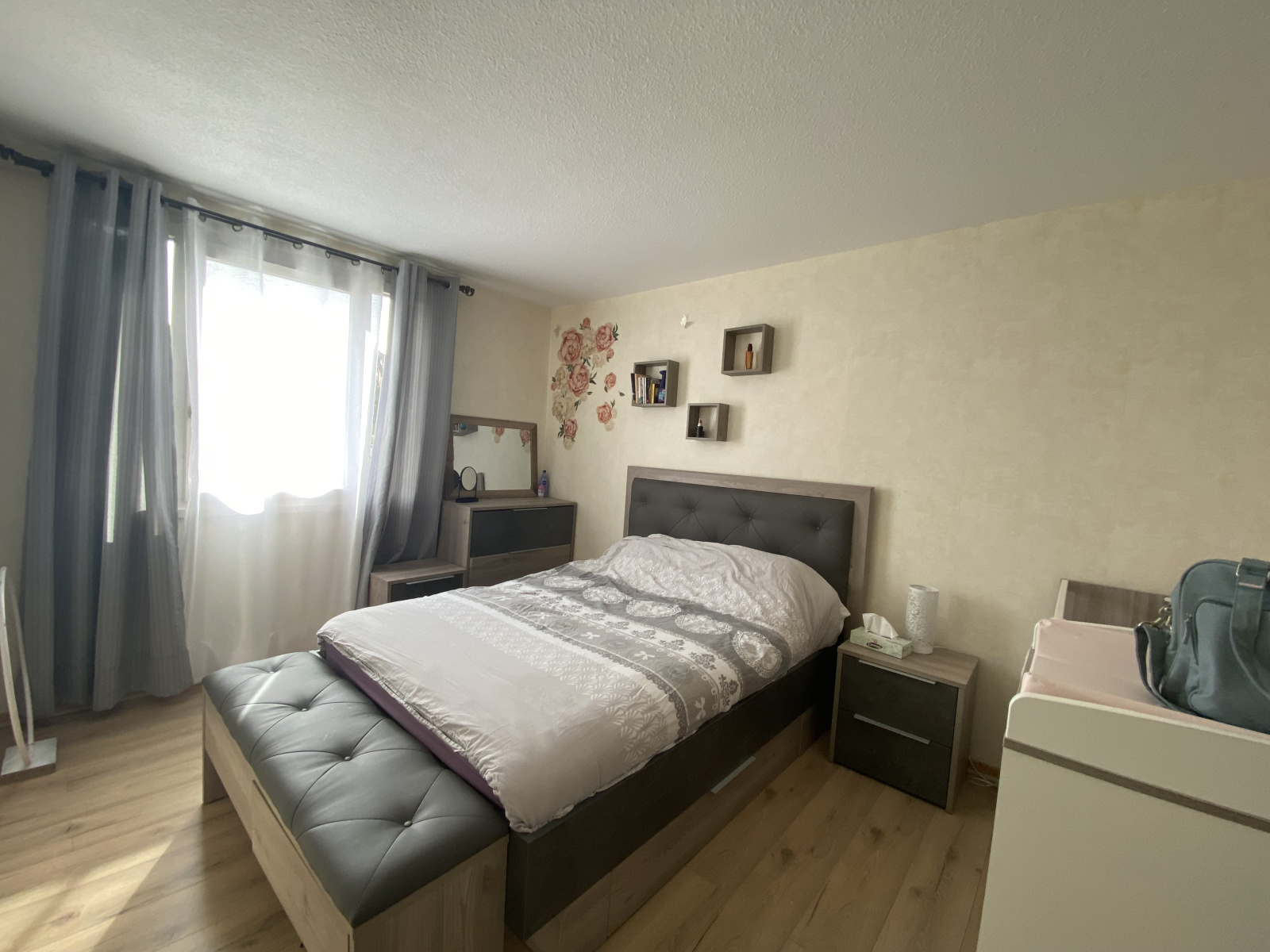 Au 1er étage d'une copropriété calme, il est composé d'une entrée donnant sur un salon, avec la possibilité de le transformer en 3ème chambre, un salon, un coin repas, une cuisine équipée donnant sur un cellier.